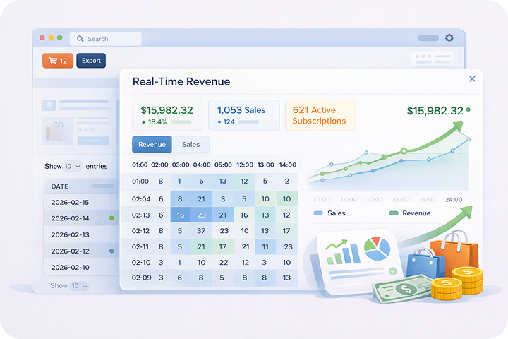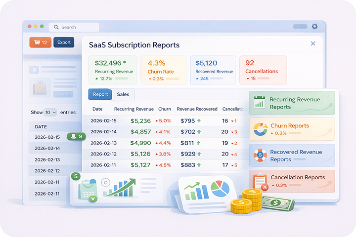 With Kartivo you can get recurring revenue reports, churn reports, recovered revenue reports and cancellation reports.
