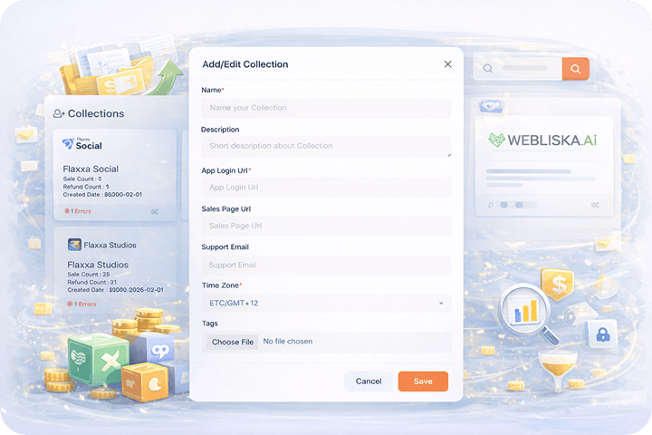 - View sales count and refund count for each collection