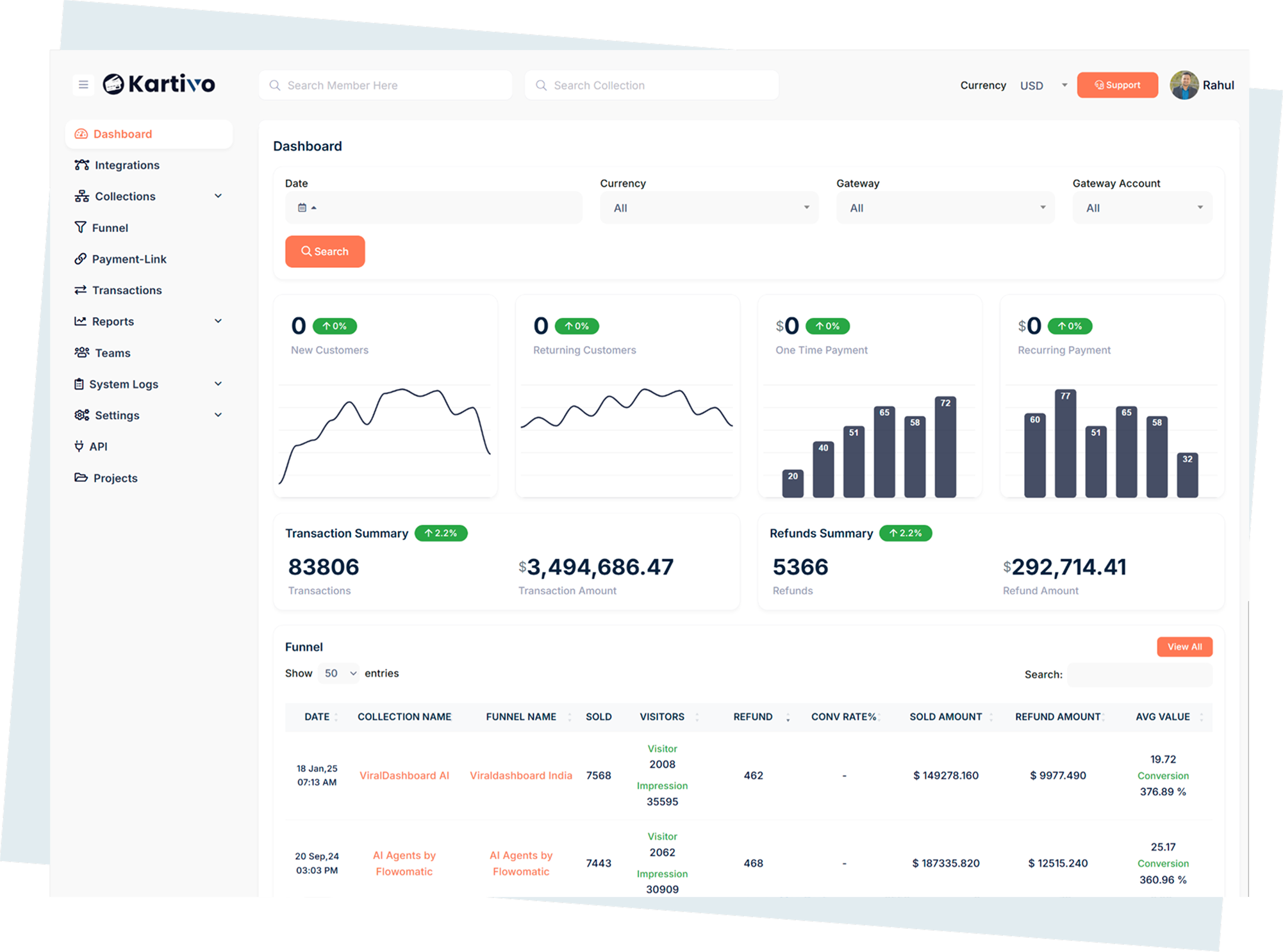 Every new sale will be automatically displayed and updated in your Kartivo dashboard so you can track all your sales in real time.