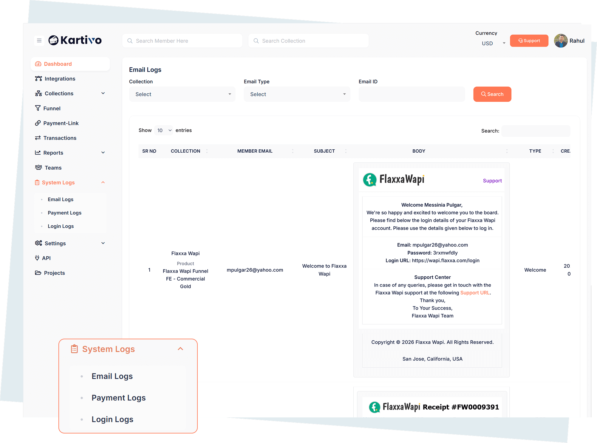 Track every email sent, every payment processed, and every login attempt across your entire platform.
