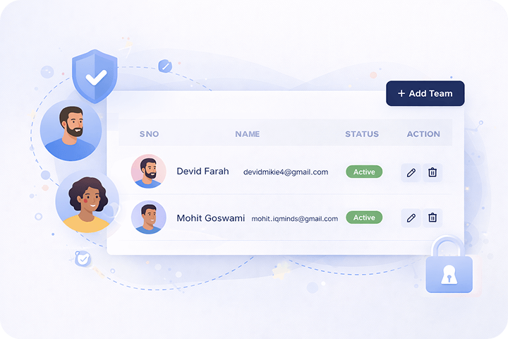 Create and manage teams with structured access, ensuring every member works with the right permissions and responsibilities.