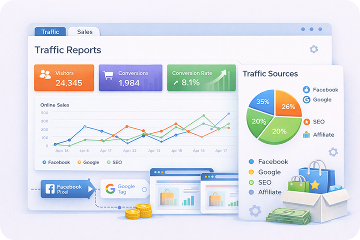 Analyze all your traffic and gain insights on which type is converting to more sales. With Facebook & Google pixel tracking you can also see exactly where your traffic is coming from so you can optimize your sales strategies.