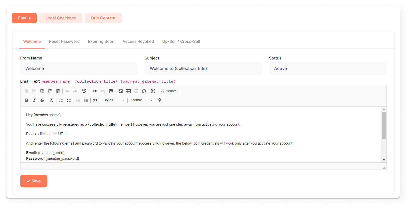 Account details/login, receipts, fulfillment updates, payment reminders, updates, subscription rebill reminders and more.