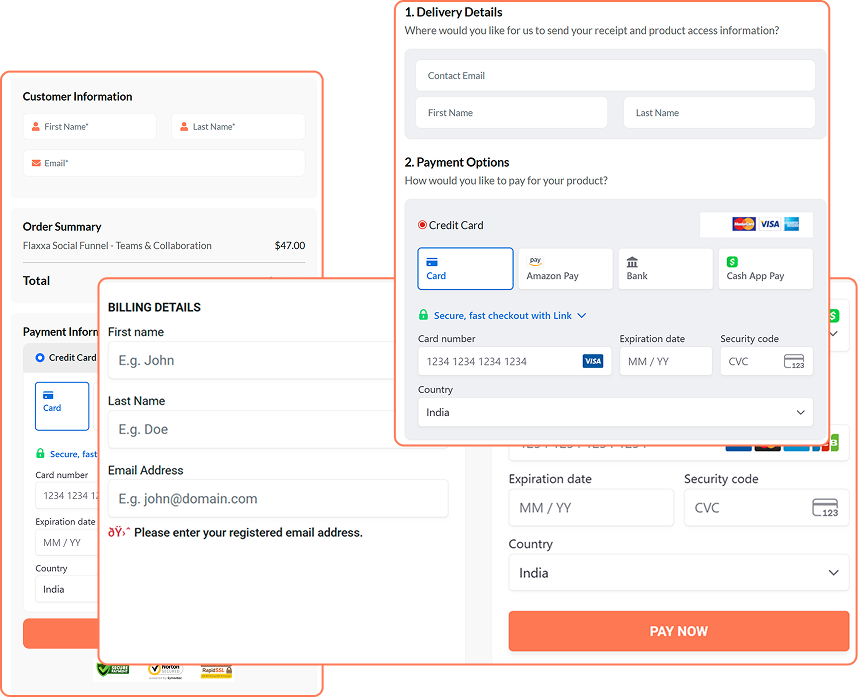 Choose your checkout form from a library of 10+ stunning, customizable pre-designed templates.