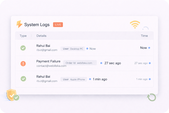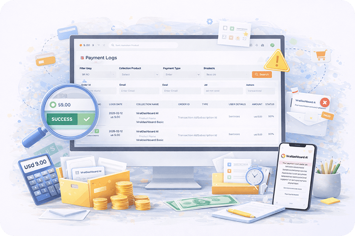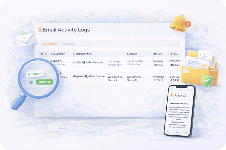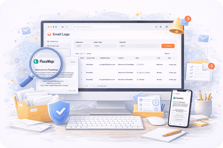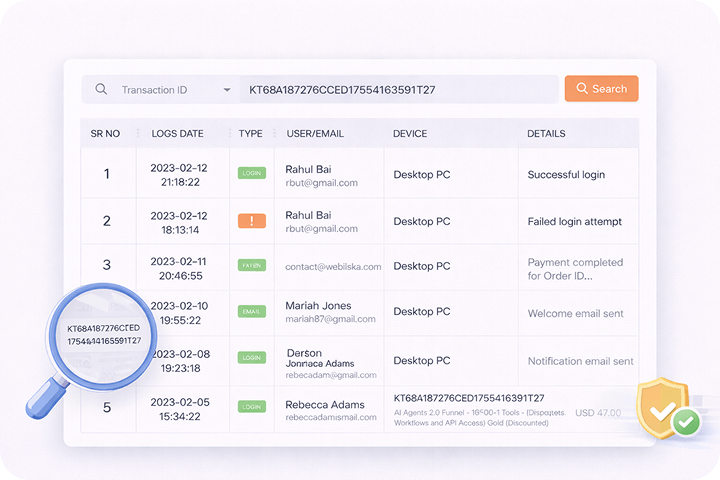 View all emails sent from the platform, including onboarding messages, notifications, and transactional emails. Each log captures delivery details, email type, recipient, subject, and timestamp—making it easy to verify communication or resolve support issues.