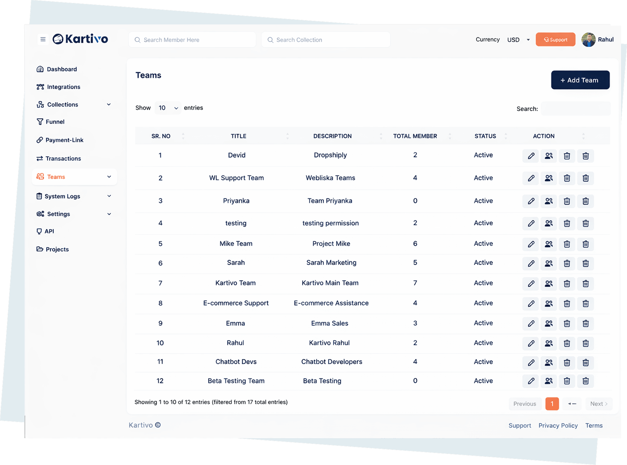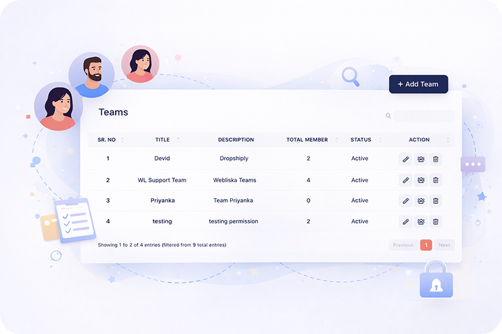 Create and manage teams with structured access, ensuring every member works with the right permissions and responsibilities.